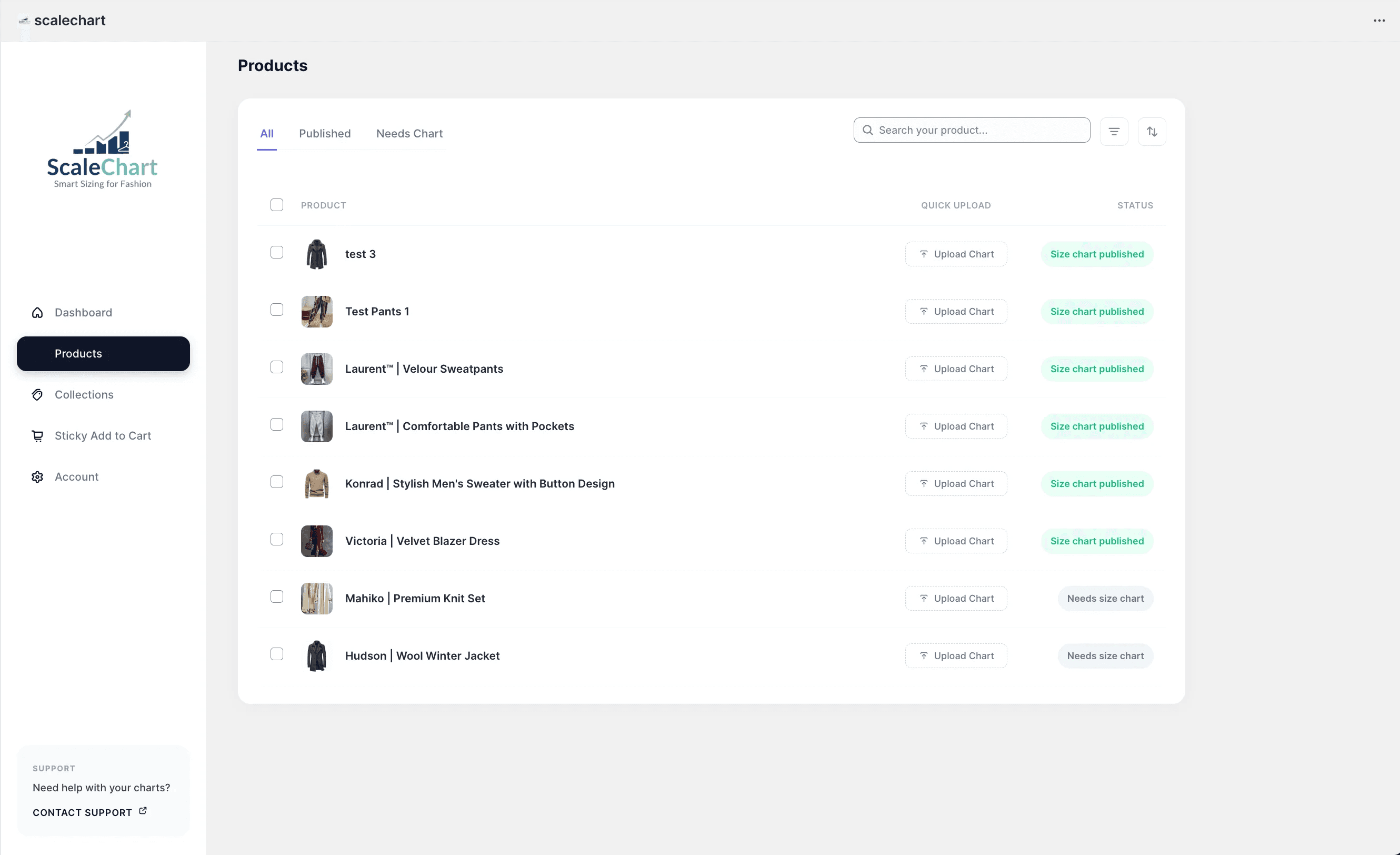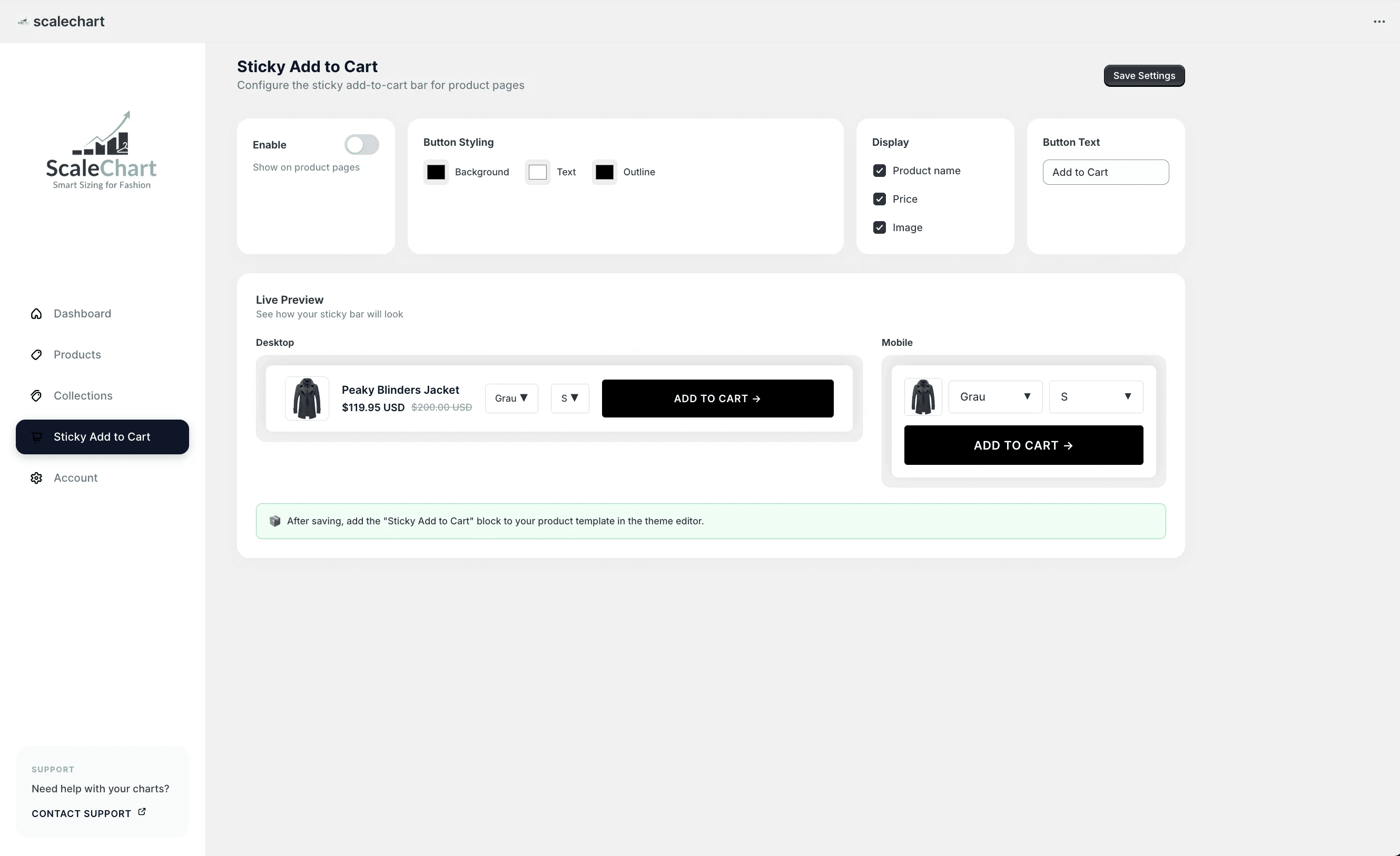 Create unlimited size charts and integrate our smart sticky add-to-cart bar for every product.